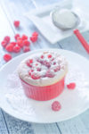 ‘Paul’s take on a raspberry soufflé uses an Italian meringue base rather than the traditional French. The Italian meringue provides a strong stable base to ensure a great rise! Be sure not to whisk the mixture to stiff peaks once the purée has been added; stopping at soft peaks ensures the soufflés can rise to their full height in the oven without collapsing.’