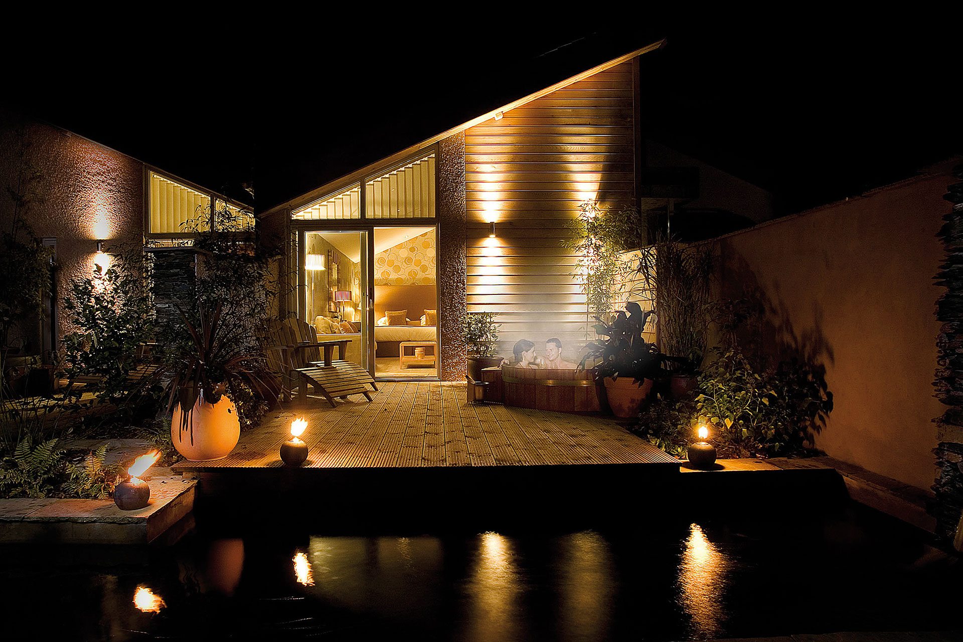 Buy: A Spa Lodge for the night, the perfect romantic spa hideaway. Five luxurious lodges have huge beds, gorgeous bathrooms, each with a fabulously private en-suite spa (treatment area, steam room, rainmaker shower, oval stone bath, and outdoor sauna and hydrotherapy hot tub in your own walled garden).