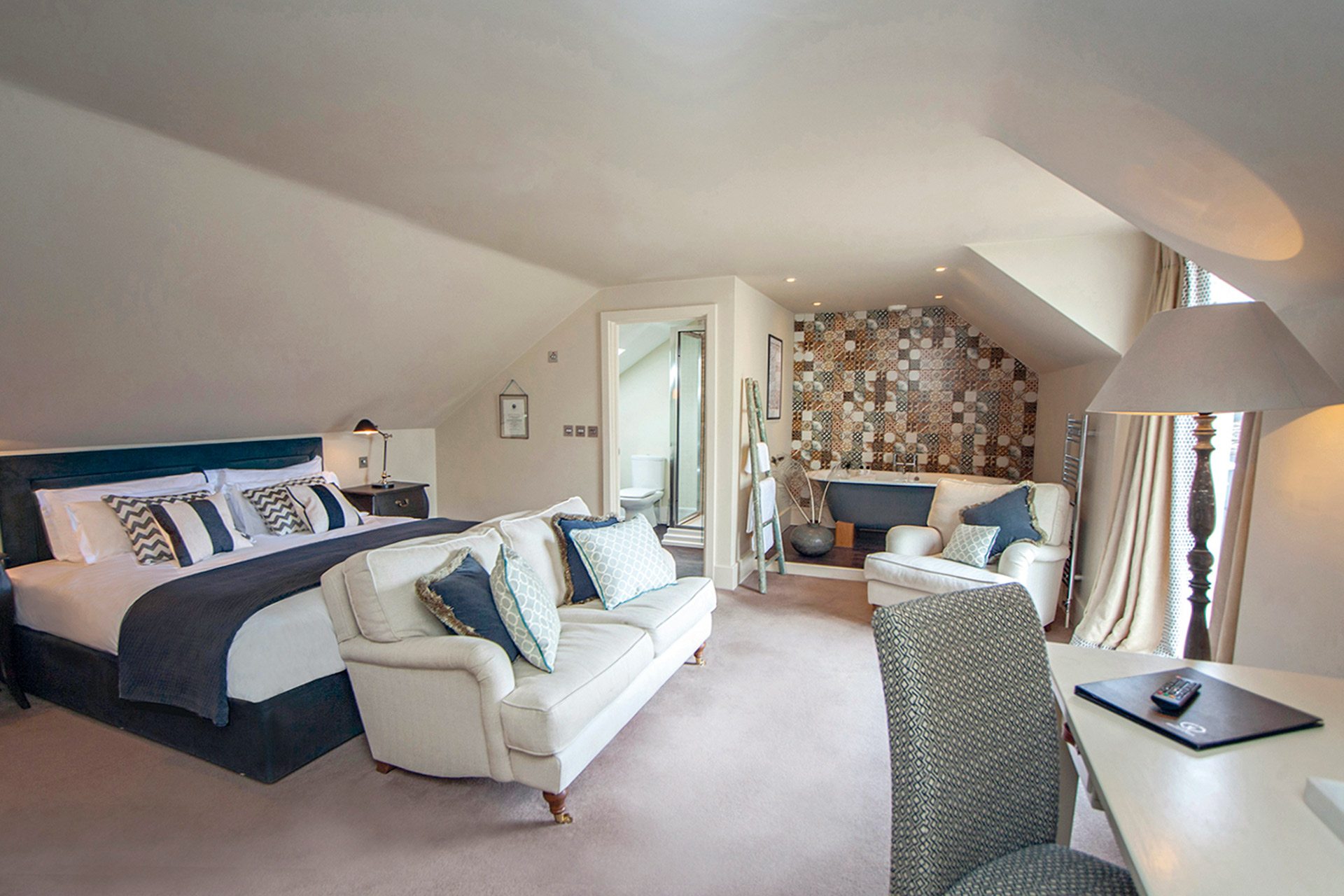 In the picturesque market town of Shaftesbury, The Grosvenor Arms has been an inn since medieval times, originally a timber-framed staging post, given a handsome facelift by the Grosvenor family in Georgian times and now revitalised by the Stay Original group. Like its sister hotel, The Swan at Wedmore (see page 00), it is at the heart of its community, relaxed and buzzy, more ‘restaurant-with-rooms’ than hotel. Downstairs, it has a country-chic dining room, convivial panelled bar and airy conservatory. In summer the courtyard is a sunny, romantic spot for eating and drinking. Dishes from executive chef Tom Blake’s kitchen are simple but inventive: try his signature slow-cooked shoulder of pork or one of the excellent wood-fired thin-crust pizzas. The 16 bedrooms are smart and stylish with large beds, top-quality linen and extras including Tassimo coffee machines. For those that can’t be without their beloved pooch, dogs are welcome in all the rooms. Doubles from £90.