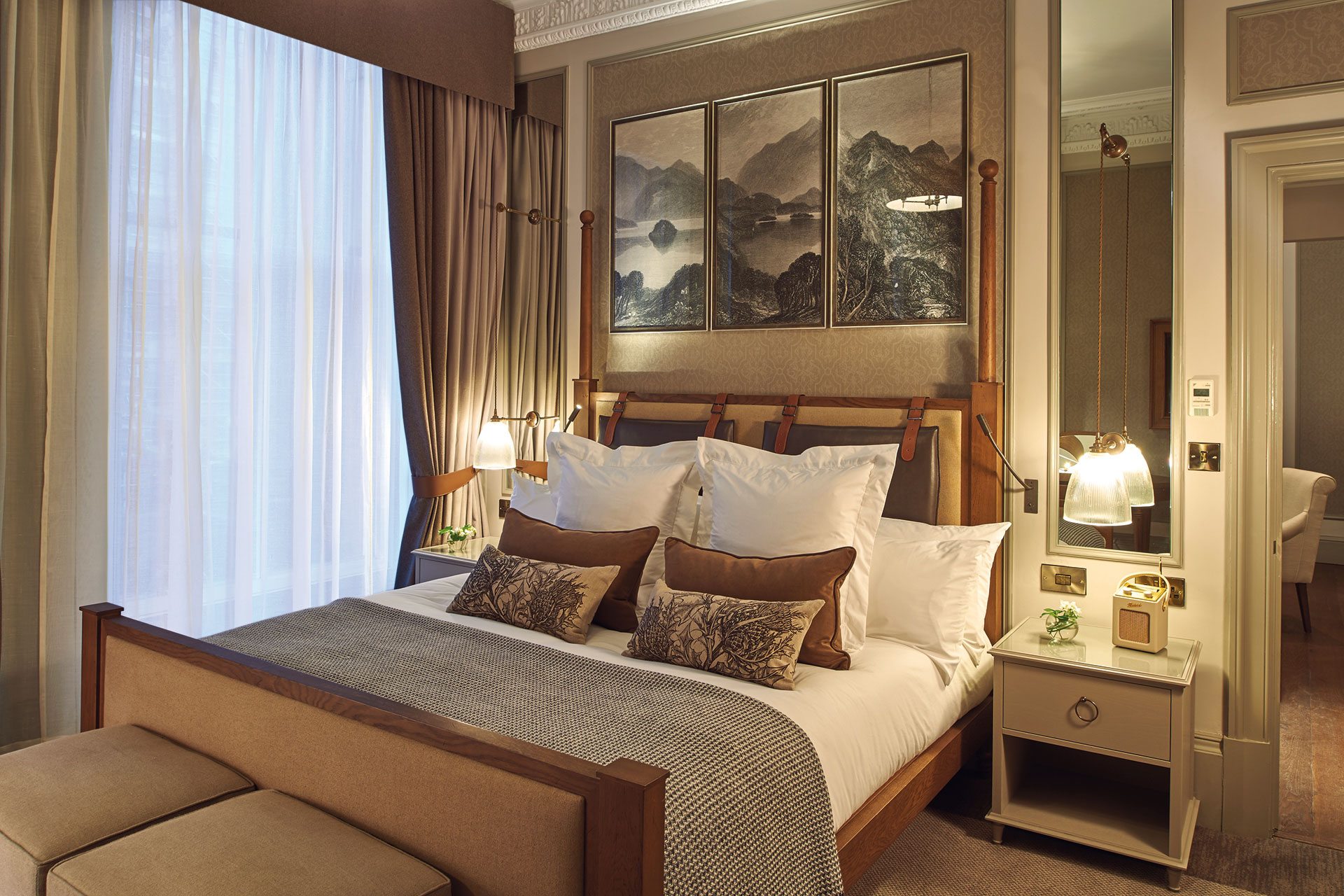 George Street was built in the 18th century as the showpiece street for New Town, and this grand city hotel certainly lives up to the road’s prestigious history. While the pillared entrance hall feels palatial, the rooms are anything but austere, with softly glowing glass pendants by the bedside, Bute blankets in tasteful grey at the foot of the bed and a soft colour palette taken from 19th-century Scottish landscape paintings. Downstairs is The Printing Press Bar & Kitchen, once home to novelist Susan Ferrier and John Oliphant, whose decendents founded one of Scotland’s most famous publishing houses. It is here you’ll find the finest Stornoway black pudding at breakfast and Tweed Valley Scotch beef cooked at night. This isn’t the sort of place you forget which city you are in once through the front door, this hotel has a true sense of itself – even the guest services team wear kilts. Doubles from £189.