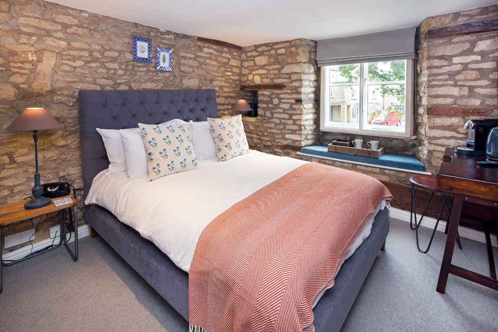 In the heart of beautiful Stow-on-the-Wold, the Sheep is a fine example of Brakspear’s elegantly updated inns. With 22 homely bedrooms it now manages to be a traditional, warm and hearty inn yet with a fresh and contemporary feel. Like most of the buildings in Stow, the inn dates back to the 17th century, while the cool blue and green tones of its refurbishment lend a welcome splash of colour, freshness and modernity. Nowadays the Sheep draws in guests from near and far and it’s easy to see why: there’s an immediately open atmosphere that, with the soft lighting, ensures relaxed dining for parties large or small, plus a view onto the open kitchen and wood-burning oven. The Sheep also ticks boxes in summer, with a suntrap outdoor dining area built around a feature fireplace. Here’s a rural home-from-home that will soften even the hardest of city-dwelling hearts.