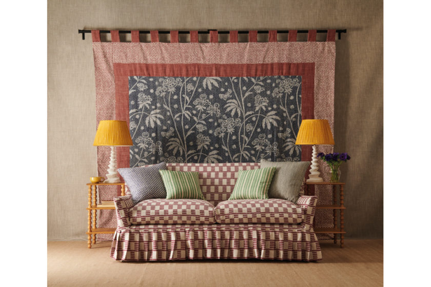 All patterns in the Fermoie offering are presented in five colour families: reds, yellows, greens, blues, and neutrals, and edited to create infallible combinations. Fabrics are either pure cotton, 100 per cent linen or a union of the two, and are suitable for upholstery, drapery, fabric walling and other interior uses. ‘Much of the beauty of Fermoie fabrics is down to the materials from which they are made,’ continues Tom. ‘Texture and depth bring a beautiful pattern to life so we continually experiment with natural fibres and blends to achieve textural perfection without losing sight of our sustainability goals.’ Linen is the company’s single biggest raw material and its weavers work with flax farmers within a few hundred miles of the factory (flax is sustainable) while the cotton is woven exclusively for Fermoie by the first UK cotton mill to be awarded Soil Association and Global Organic Textile Standard accreditation.