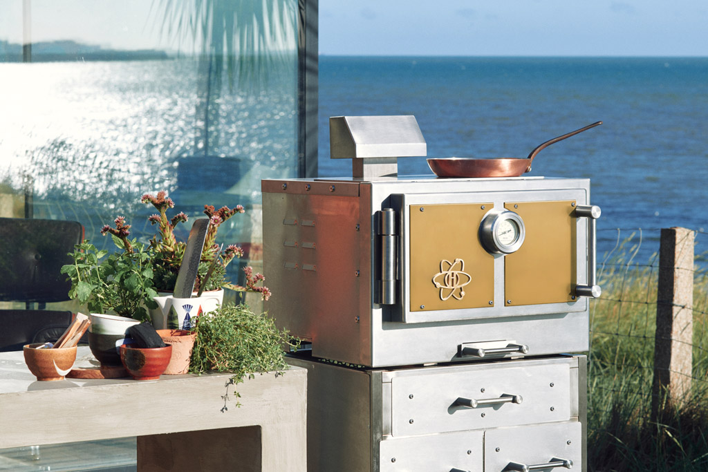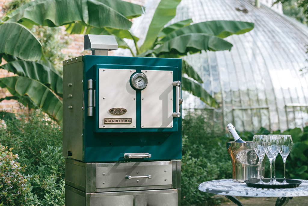 The Harrison collection includes ‘The Classic’, which comes with an optional stainless steel cabinet on wheels to make transporting it outside from the kitchen easy; ‘The Icon’, which has two ovens in one that cook at two different temperatures; and most recently ‘The Atom’, which includes an oven, a plancha and a hob. All the ovens are customisable with a curated range of colours and finishes to enhance the most stylish outdoor kitchen spaces.