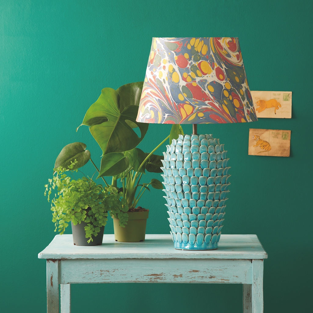 Other additions to the range include stunning chandeliers and wall lights, tiny ceramic pendants, new lamp bases and numerous outdoor lights. As part of the latter, there are contemporary cylindrical pillar lights in copper; understated round wall lights in aged brass that will mellow and darken naturally over time; and discreet downlighters. Combine the new shade factory with Pooky’s already extensive global network of specialist craftspeople – working in disciplines such as glass blowing, brass casting, weaving, block printing, marbling, wood carving and glazing – and the company is perfectly set-up to offer a bespoke design and delivery service for large commercial developments and projects. Almost everything in the range can be customised too, using alternative colours, fabrics or finishes.