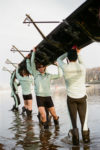The rowers walk their boats into the River Thames, wearing Le Chameau wellies, of course.