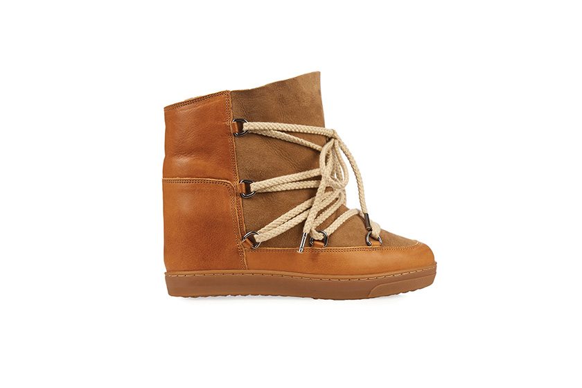 Try these tan-brown Étoile Nowles ski boots from Isabel Marant for the perfect snow boot. Ideal for cold-temperatures with their shearling lining. They also have a hidden wedge heel to boot.
