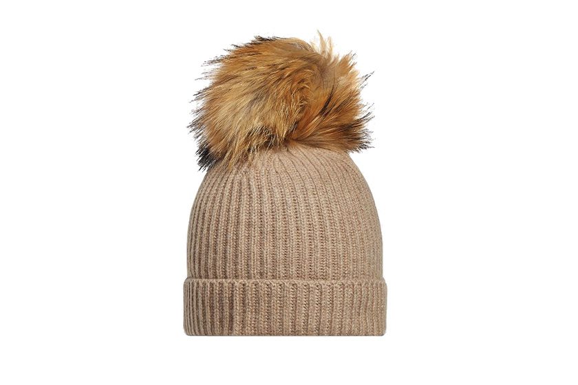 N Peal Ribbed cashmere hat with raccoon pom, £129