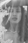 ‘From the red-carpet to the aisle, the middle parting is still a favourite with fashion-forward brides,’ adds bridal stylist Anna Sorbie. ‘It brings a fresh, modern take to classic styles and was seen all over Bridal Fashion Week. For a cool-girl look, go for a deeper middle part with shorter loose bangs to frame the face and add a luxury freshwater pearl hair accessory for extra glam.’