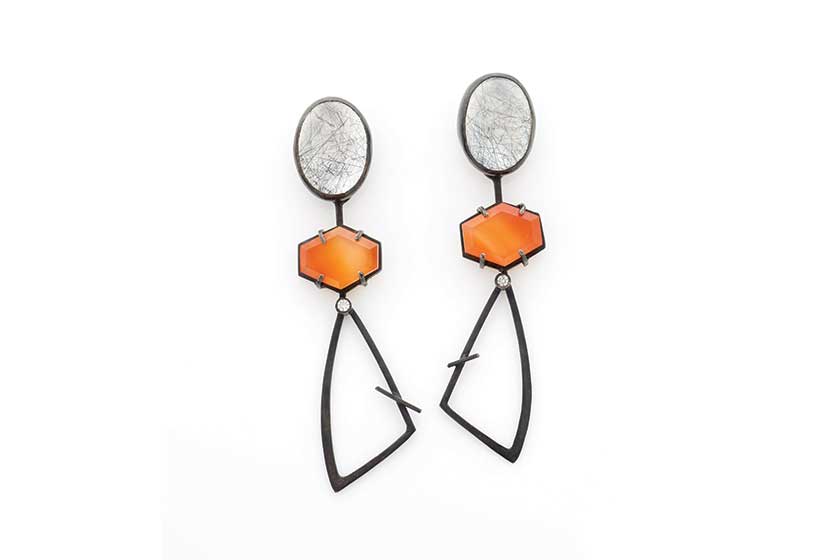 Daphne Krinos Martha earrings in oxidised silver with carnelians, tourmaline, quartz and diamonds, £1,500.