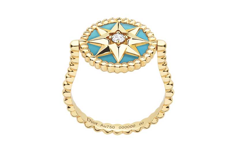 Dior Rose des Vents 18kt yellow gold ring with diamond and turquoise, £2,450.