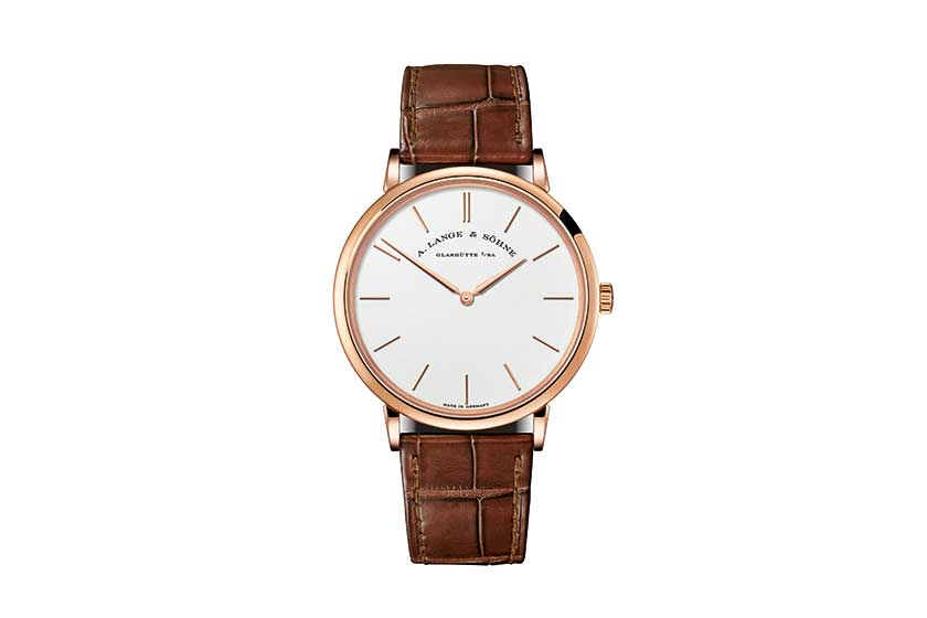 A. Lange & Söhne Saxonia thin rose gold with silver dial and alligator leather strap £17,700
